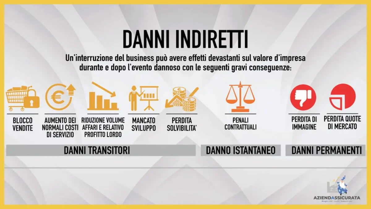 L’esperienza insegna come il danno indiretto (interruzione di attività), risulti spesso notevolmente superiore al danno diretto che lo ha originato, con tutte le conseguenze negative che esso può comportare.