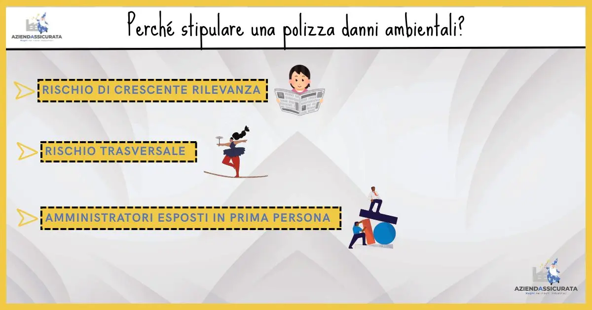 L’esposizione al rischio di danno all’ambiente è cresciuta enormemente con l’affermarsi del principio “Chi inquina paga”, che ha inasprito gli obblighi di bonifica e di ripristino;